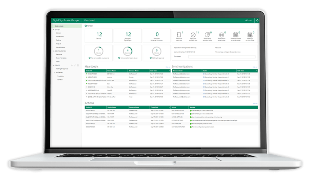 Create/confirm/edit a meeting in real-time directly on the conference room sign. With the user-friendly template editor, you can customize the layout to match your company’s branding and manage it in one centralized web-based dashboard.